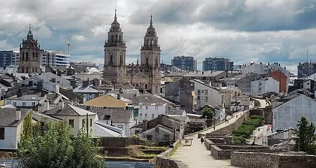 Vista de la Catedral de Lugo y las murallas romanas, patrimonio de la humanidad en Galicia